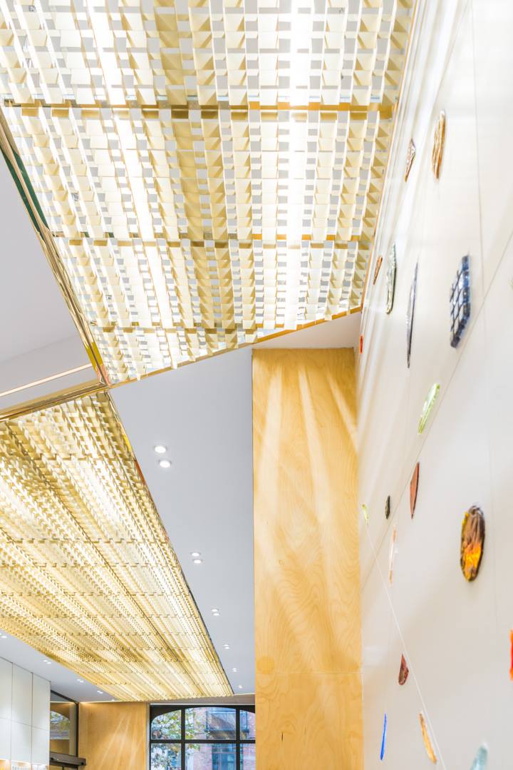The project by Nathalie De Leeuw uses many reclaimed materials purchased in our store, such as a golden ceiling from Generale de Banque and glass inserts from Val Saint Lambert.