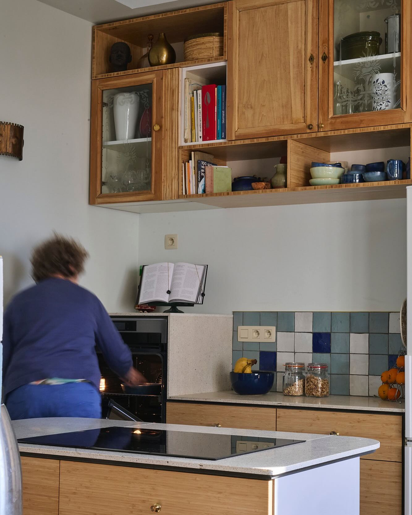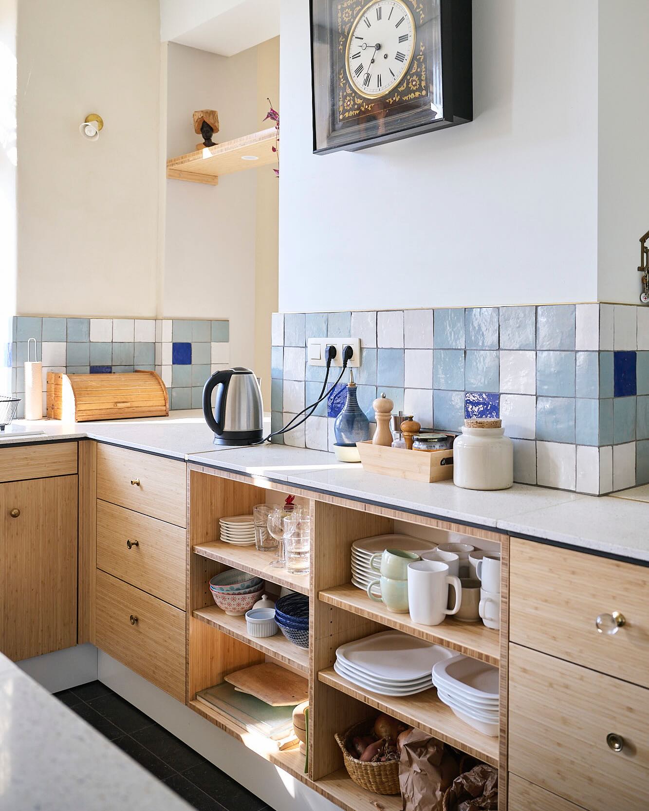 Combining a predominance of bamboo panelling (salvaged) with a beautiful terrazzo worktop (reclaimed), featuring brass accents (reclaimed) and not forgetting a mix of second-hand handles; this kitchen definitely has it all!..."