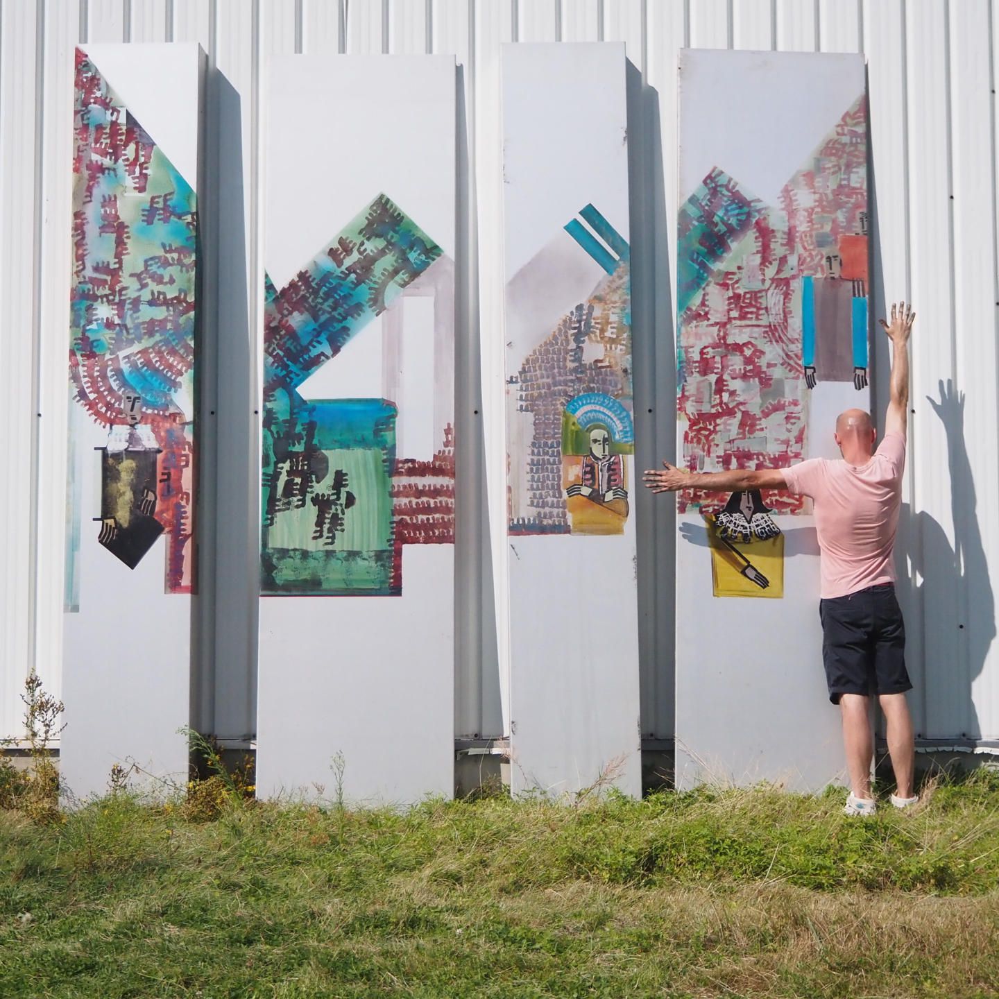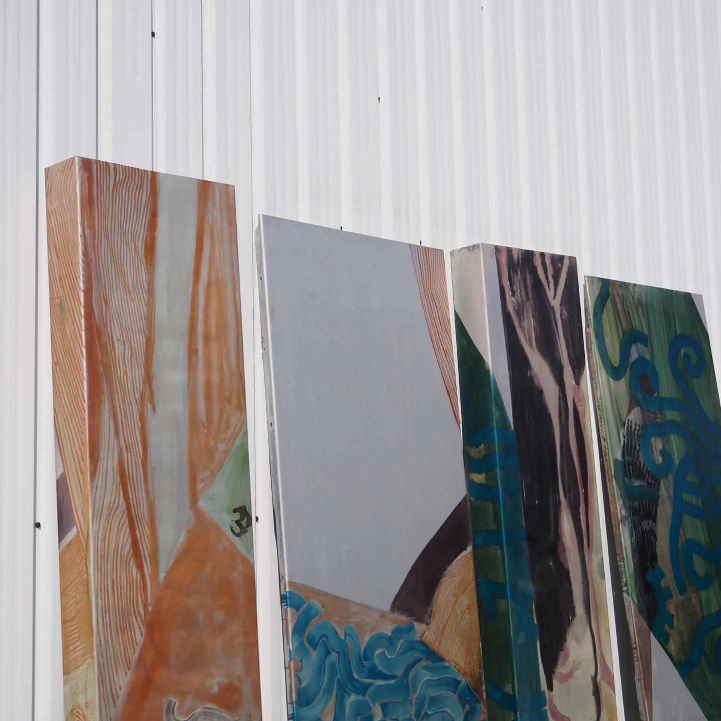 In 2003, the Federal state decided to abandon and sell off the property. The regionalisation of several departments had made the building to big for the Federal state alone. Renovation would have to include the removal of asbestos. In 2006, Ralph Cleeremans was invited by the new owner to retrieve from the building the panels he had produced, but had never been paid for. The elevator doors, lined in asbestos, were unsalvageable, but with help of a few friends the artist demounted the panels that lined the columns. They would be stored temporarily in the workshop of an artist friend, were they ended up staying a full decade.