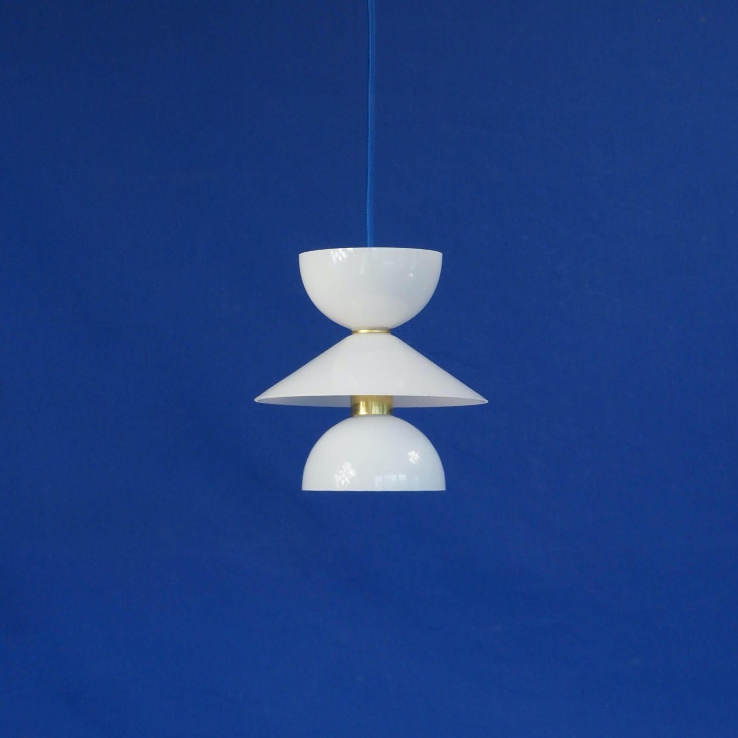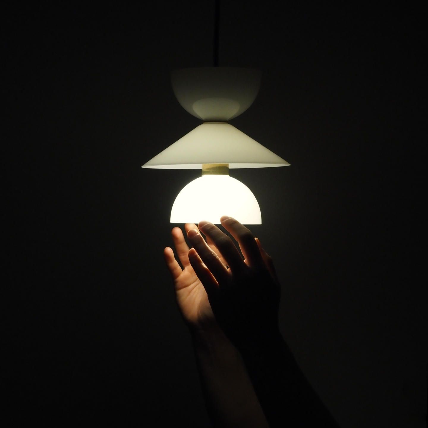 Our "Sofia" hanging light was designed from a stock of opaline glass from a former chandelier manufacturer in Brussels. And "Bob" can be both a pendant light (literally!) or a table light.
