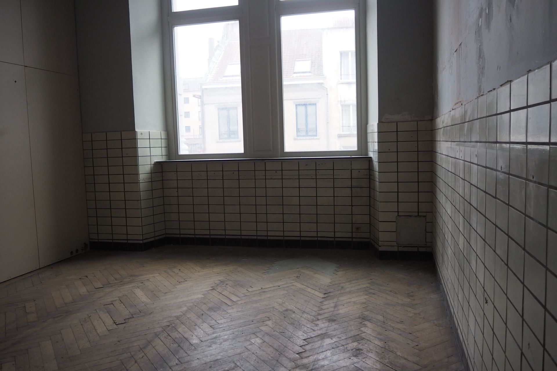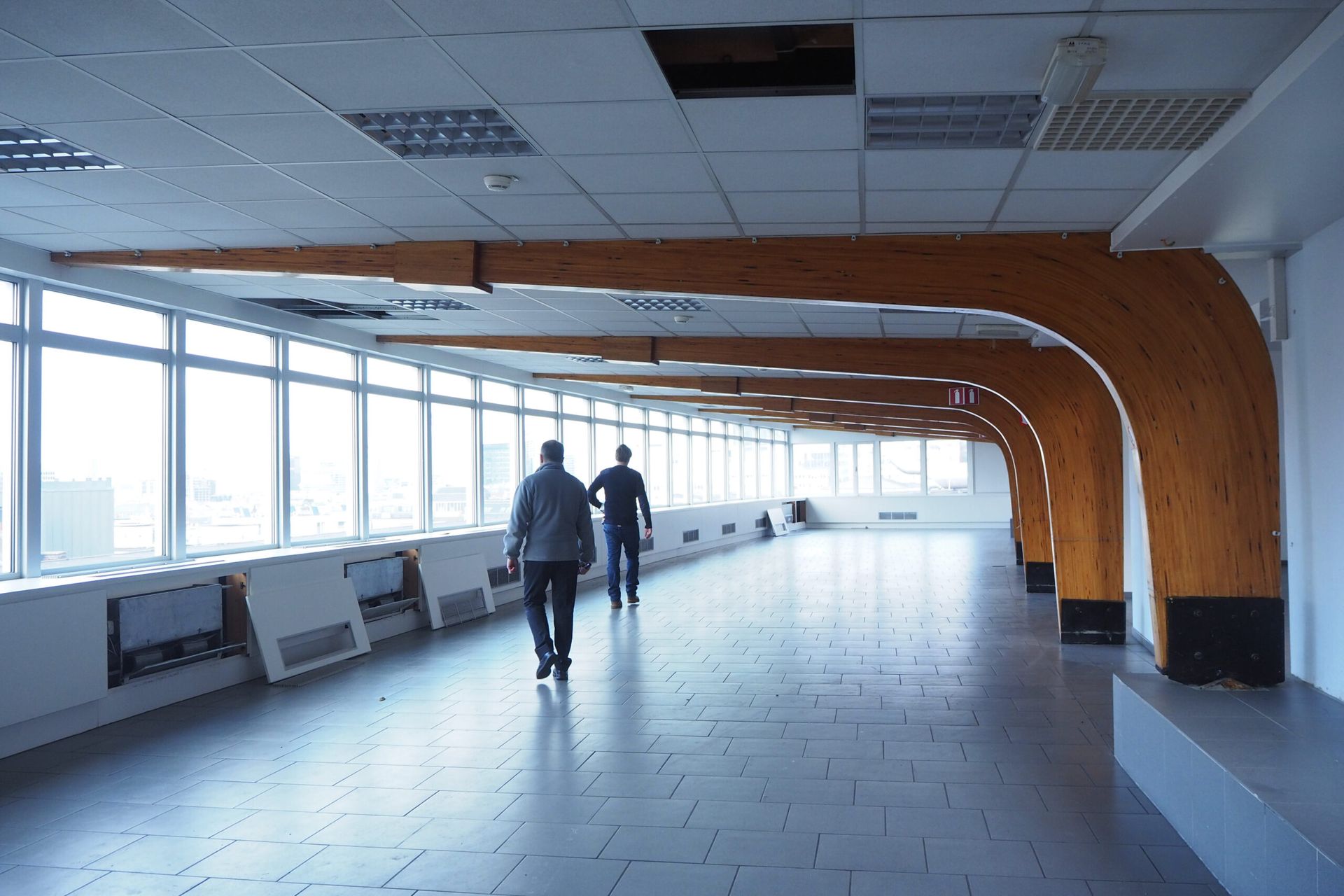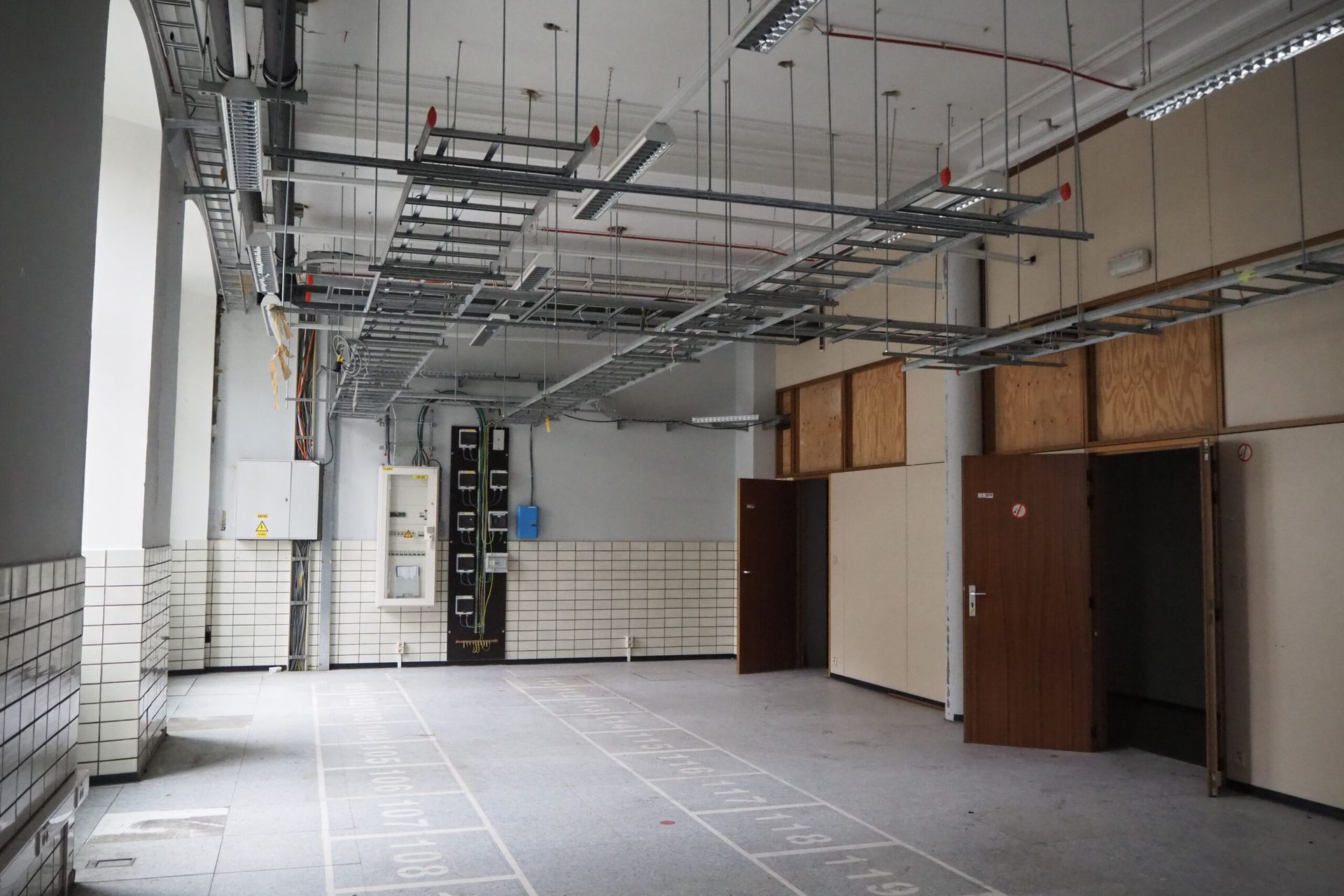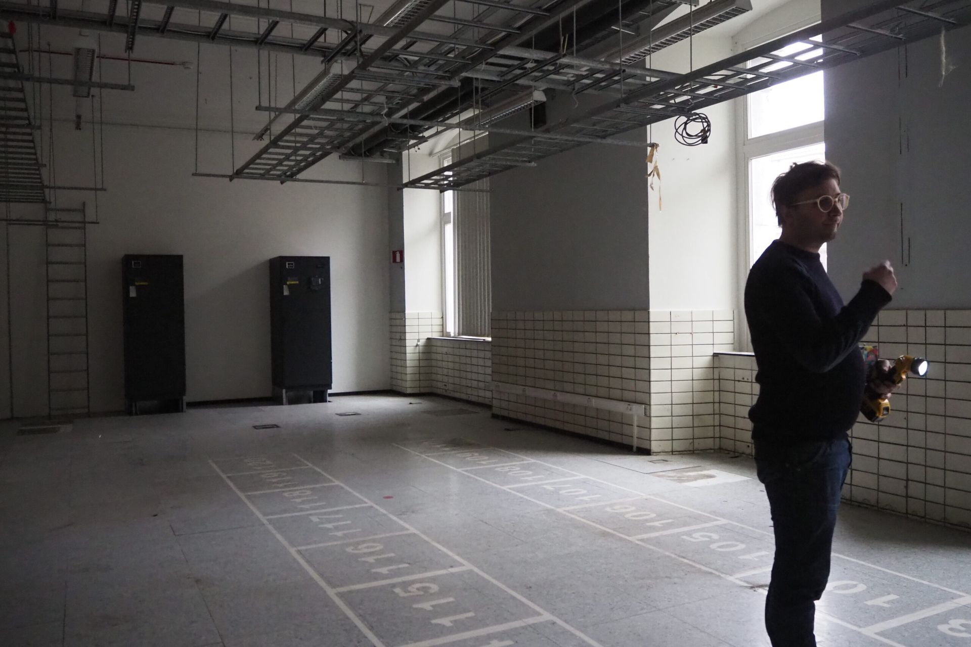 The site was in use by former state owned telephone company Belgacom (now Proximus), and contained datacenters, offices, workshops, a canteen and other functions. Several parts had been renovated or modified in different moments, resulting in a very heteroclite collection of finishing materials. Few of the more noteworthy historical building materials had been preserved. Many tiles and marbles had been painted over, parquet floors were covered with a raised floor.
