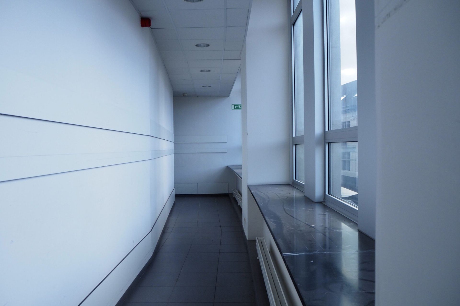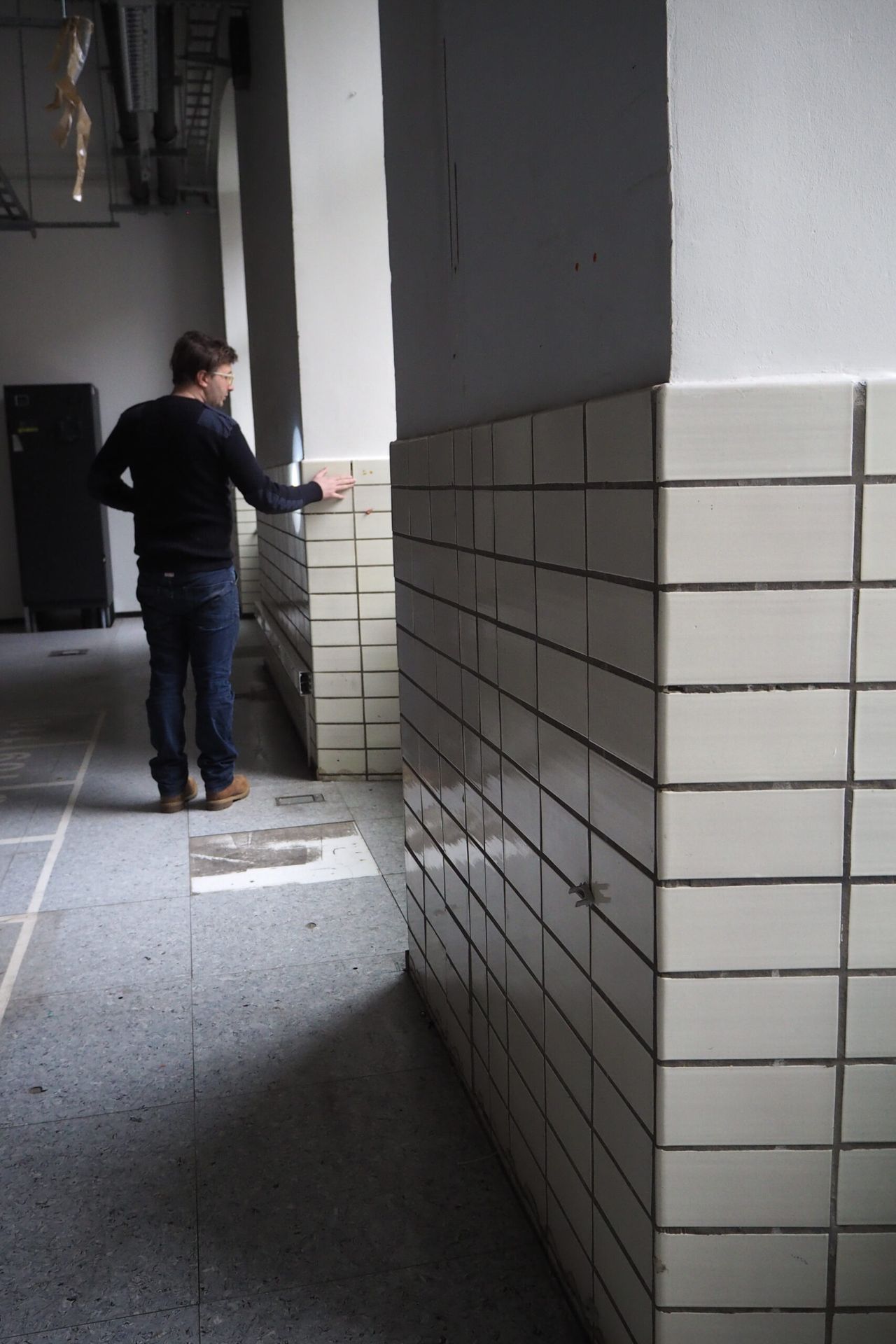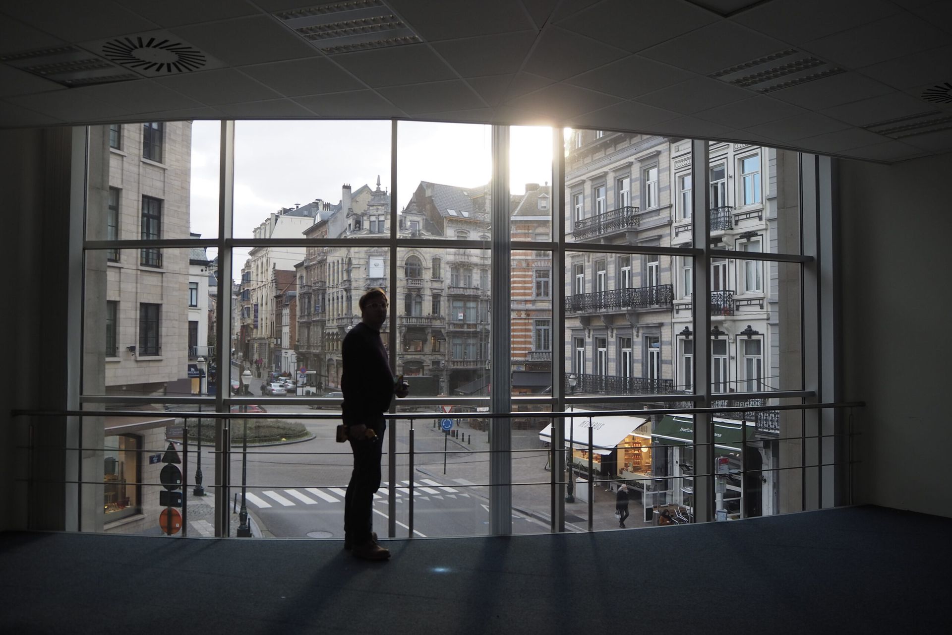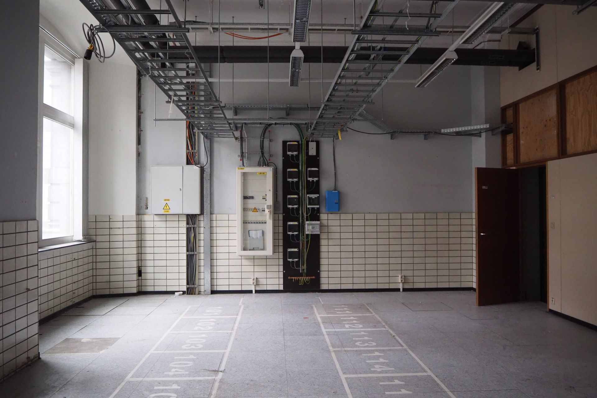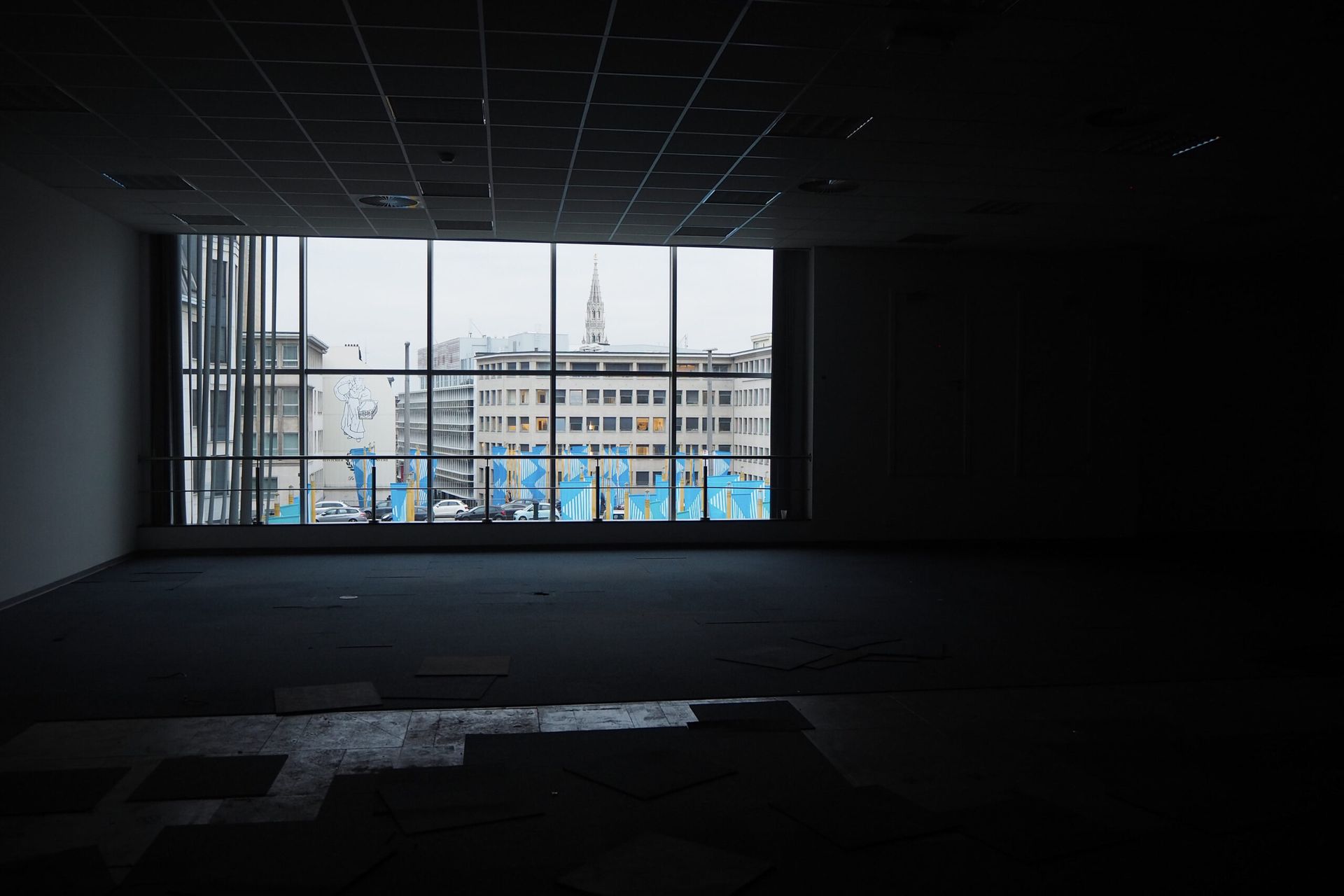 The site was in use by former state owned telephone company Belgacom (now Proximus), and contained datacenters, offices, workshops, a canteen and other functions. Several parts had been renovated or modified in different moments, resulting in a very heteroclite collection of finishing materials. Few of the more noteworthy historical building materials had been preserved. Many tiles and marbles had been painted over, parquet floors were covered with a raised floor.