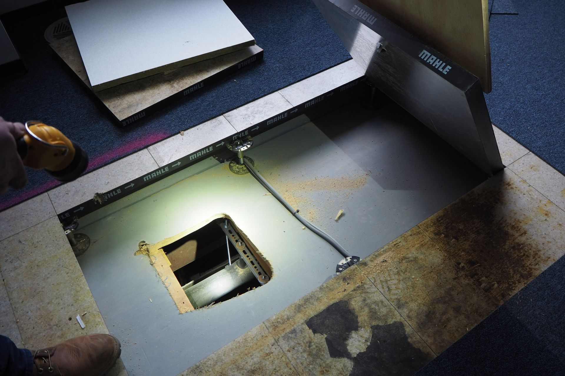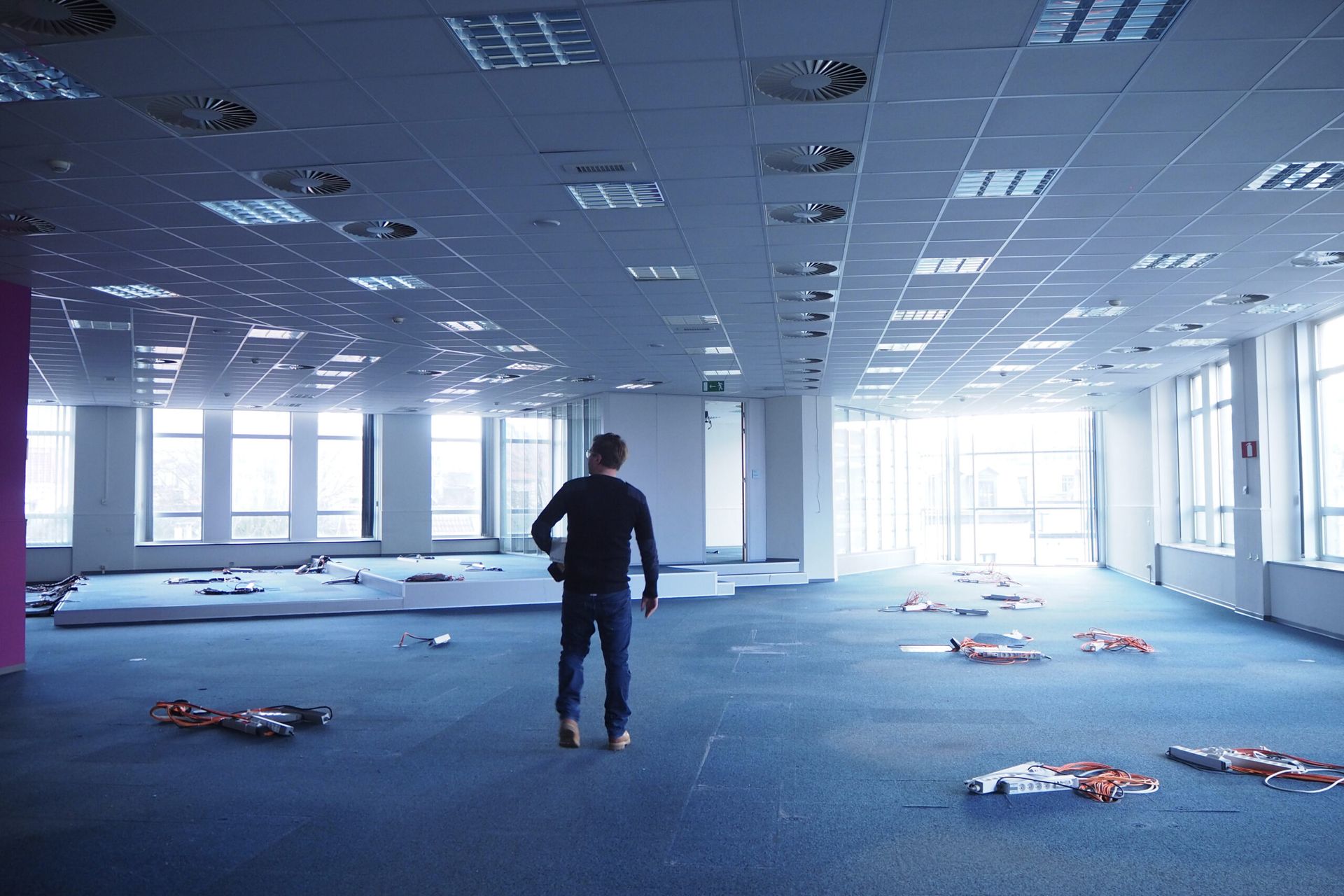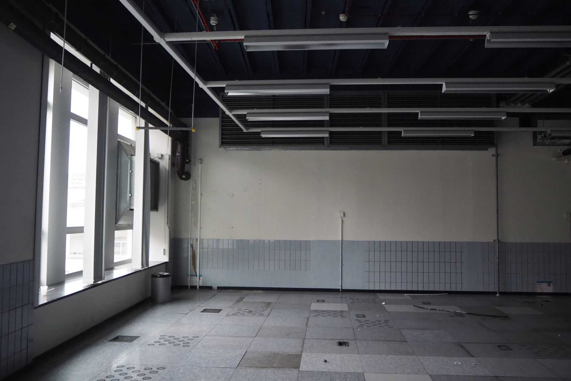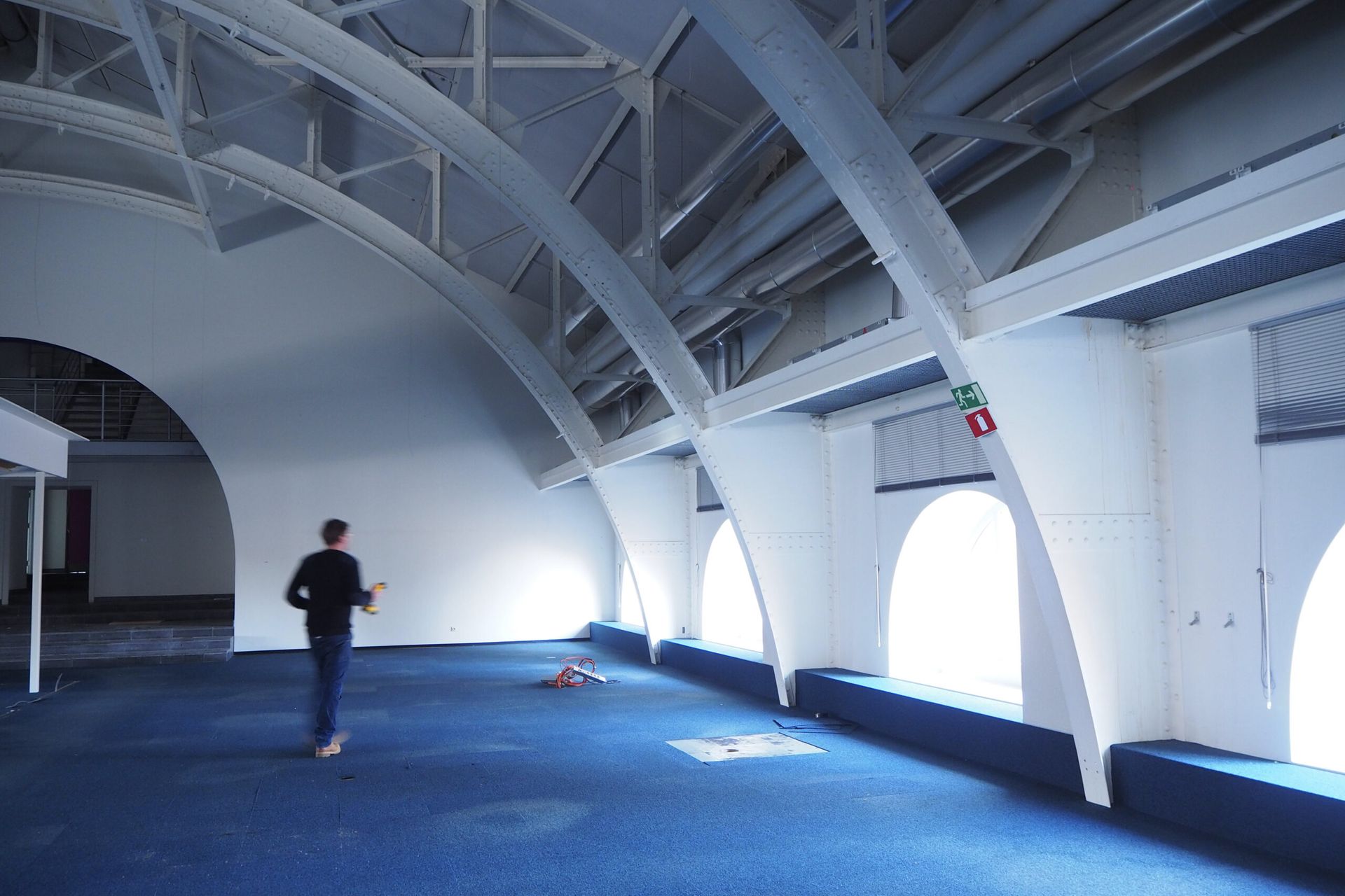 The site was in use by former state owned telephone company Belgacom (now Proximus), and contained datacenters, offices, workshops, a canteen and other functions. Several parts had been renovated or modified in different moments, resulting in a very heteroclite collection of finishing materials. Few of the more noteworthy historical building materials had been preserved. Many tiles and marbles had been painted over, parquet floors were covered with a raised floor.