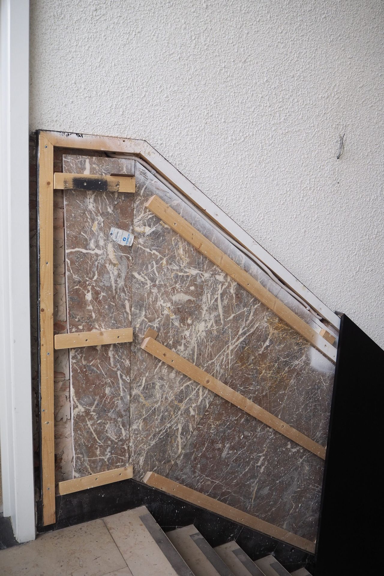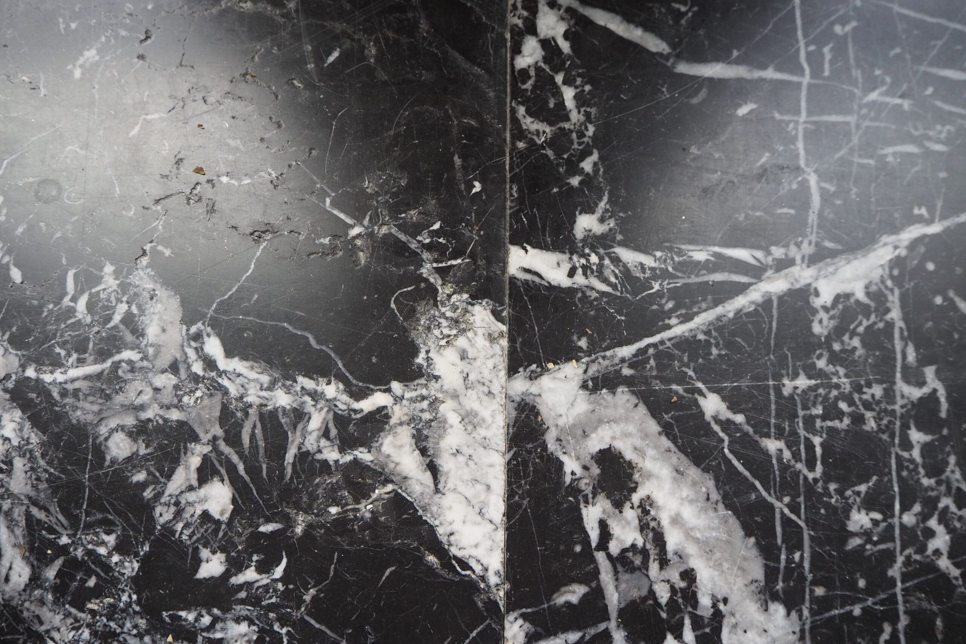 We salvaged a truckload of black marble with white veins, characteristic blue wall tiles in porcelain, as well as more contemporary materials.