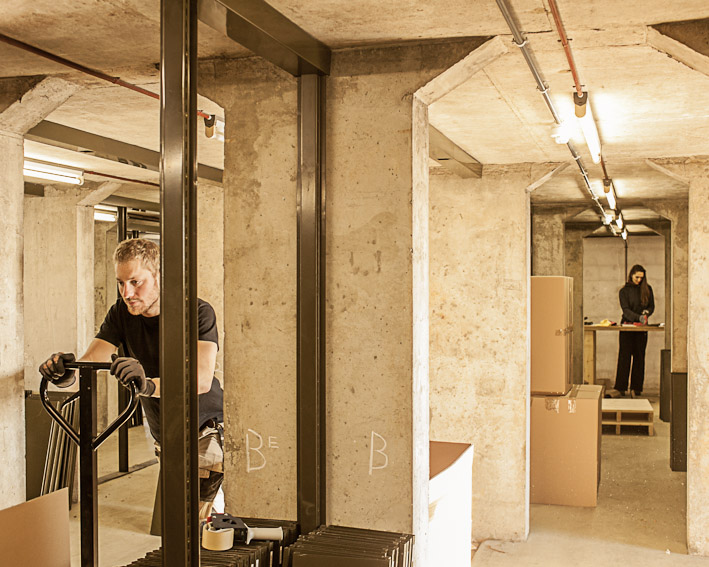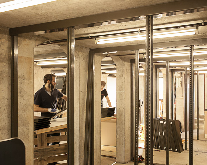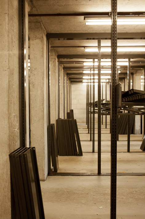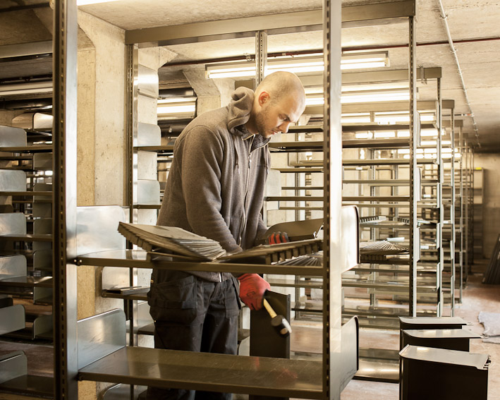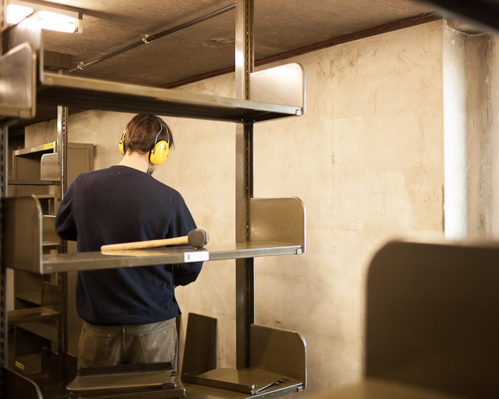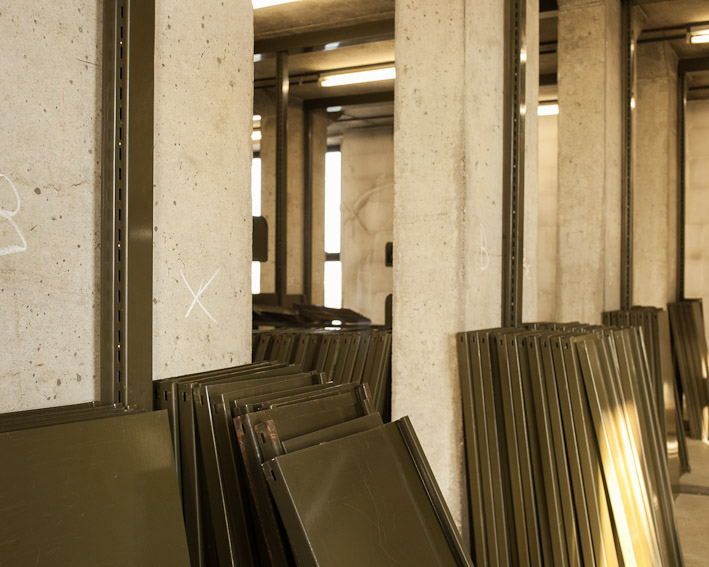 Rotor DC intervened in 2016 to dismantle, clean and package part of the original bookshelves from the tower, which needed to be taken out for renovation works. Thanks to this intervention the shelves will reintegrate the building for which they had been custom produced after completion of the works; moreover, this will happen at a lesser cost then should new shelves had been produced. The commissioner draws a triple benefit from the operation : an economic, a patrimonial and an environmental advantage.