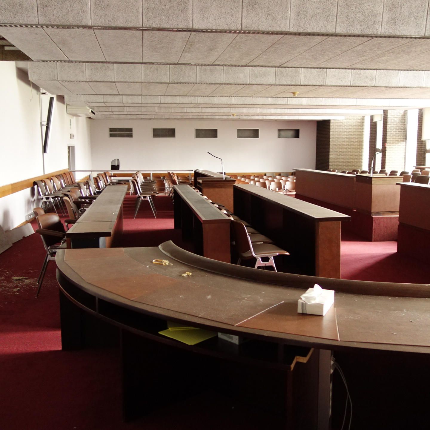We’re recovering furniture from the former Court of Appeal & Labour in Antwerp. Designed by Belgian architects Marc Appel and Jan Welslau in 1973, the building was originally intended to be a temporary solution, as the courtrooms were to be moved to a new Palace of Justice a few years later. This gave the architects a limited budget and a tight schedule to create a building meant to represent the law. A year later, in 1974, construction was completed. The result was a double tower made of prefabricated concrete, with a design that, against all odds, managed to escape banality. In the end, the building served for 50 years. It probably could have lasted longer, for a different purpose, if the city hadn't decided otherwise. This winter, demolition works will begin to make way for the new Museum of Contemporary Art of Antwerp (MHKA).