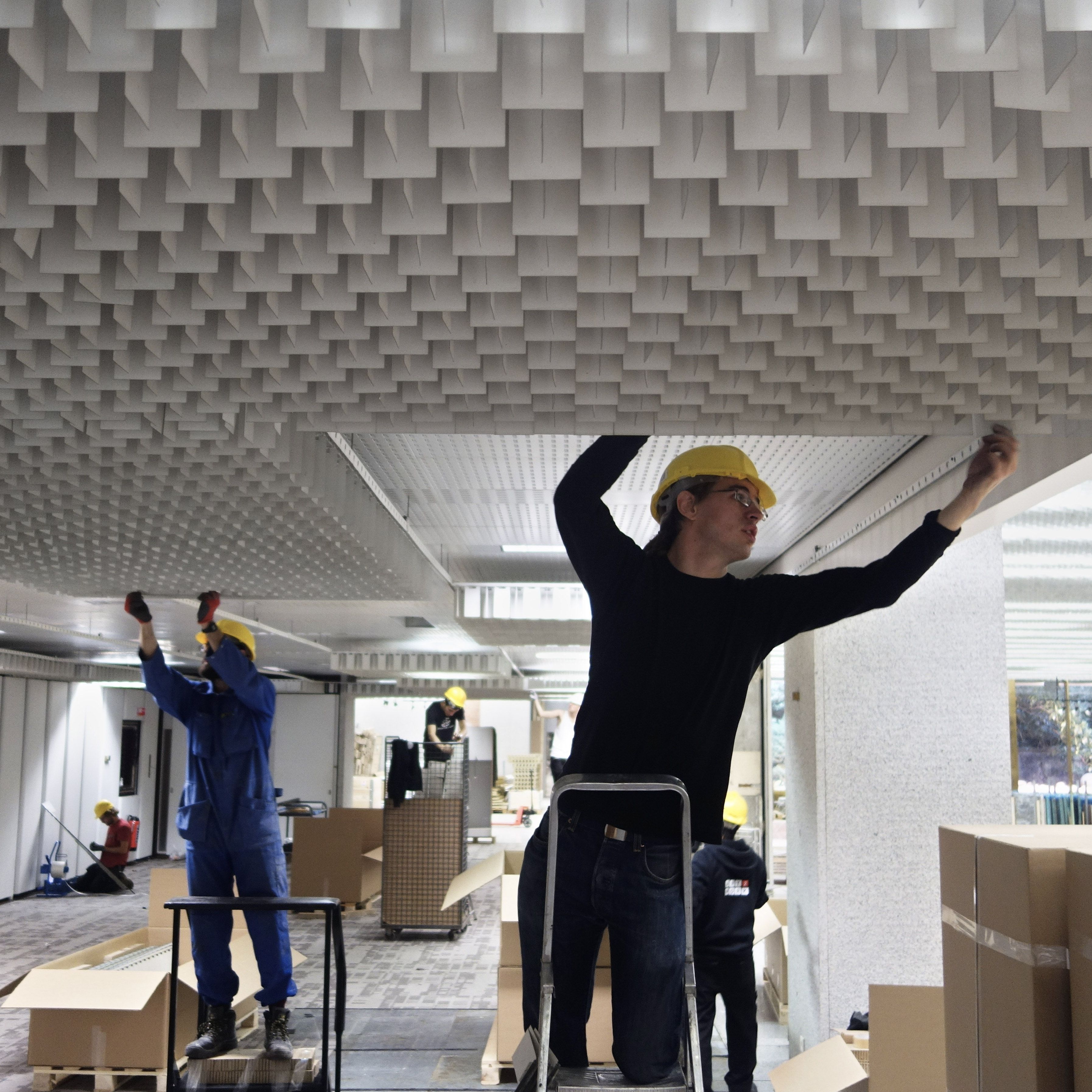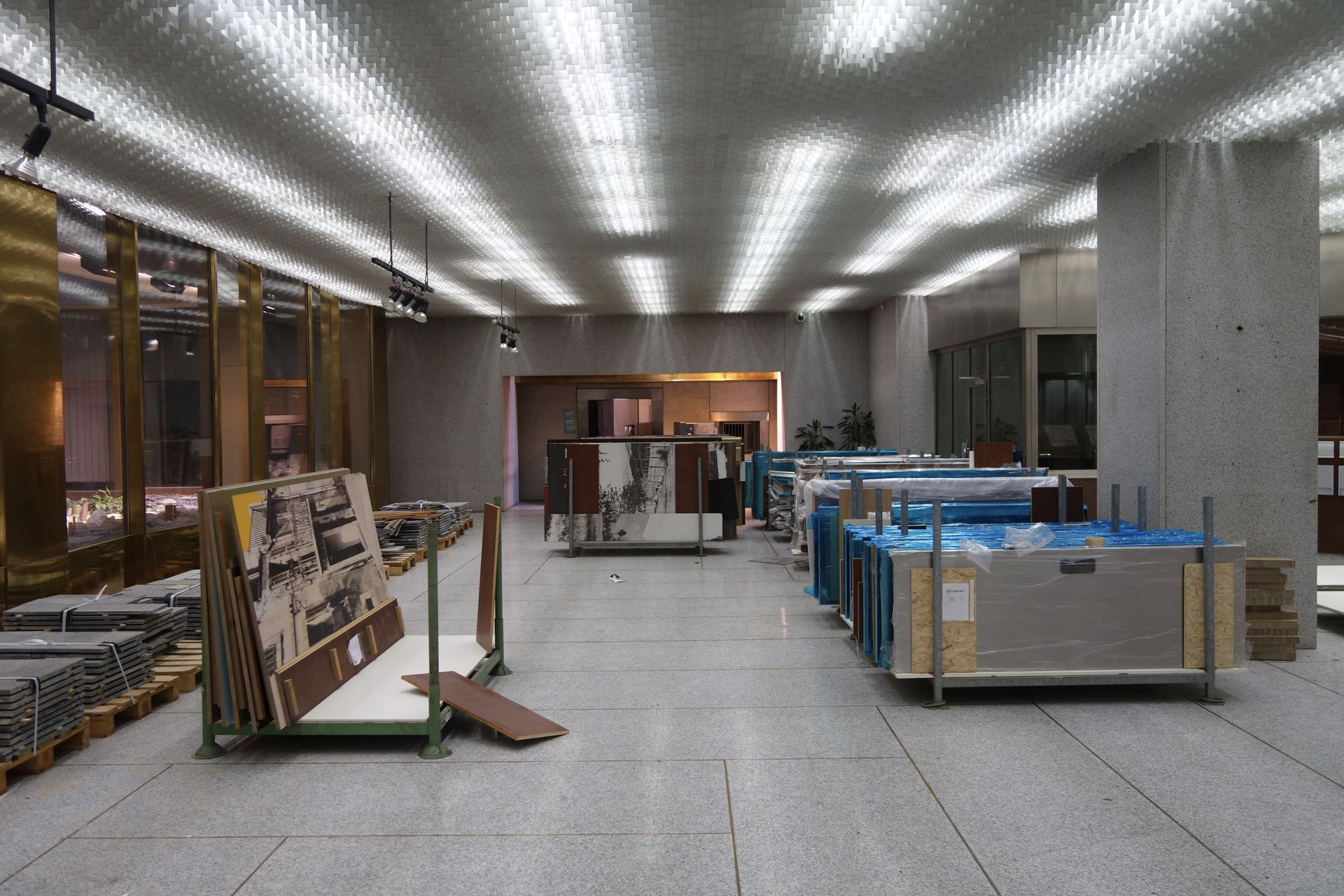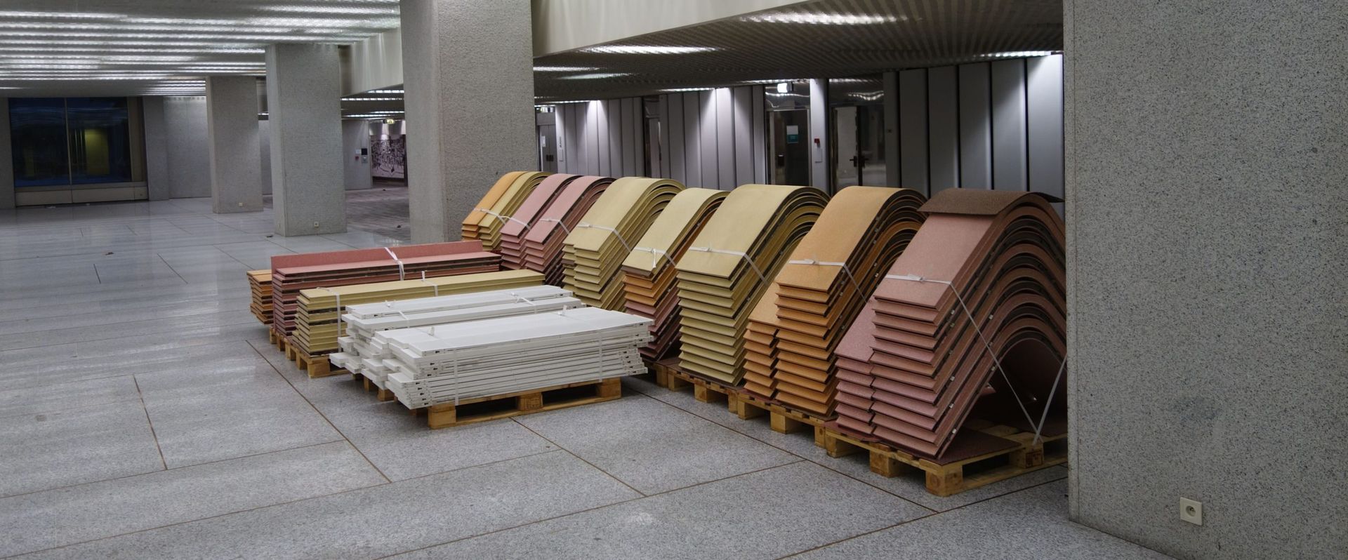 Rotor's mission included the inventory of salvageable materials, the organisation of their demount, the supervision of the necessary works as well the identification of new destinations for the materials or of projects they could be integrated in. Thousands of square meters of ceilings and floors, the entire cafeteria, a myriad of decorative elements, ...