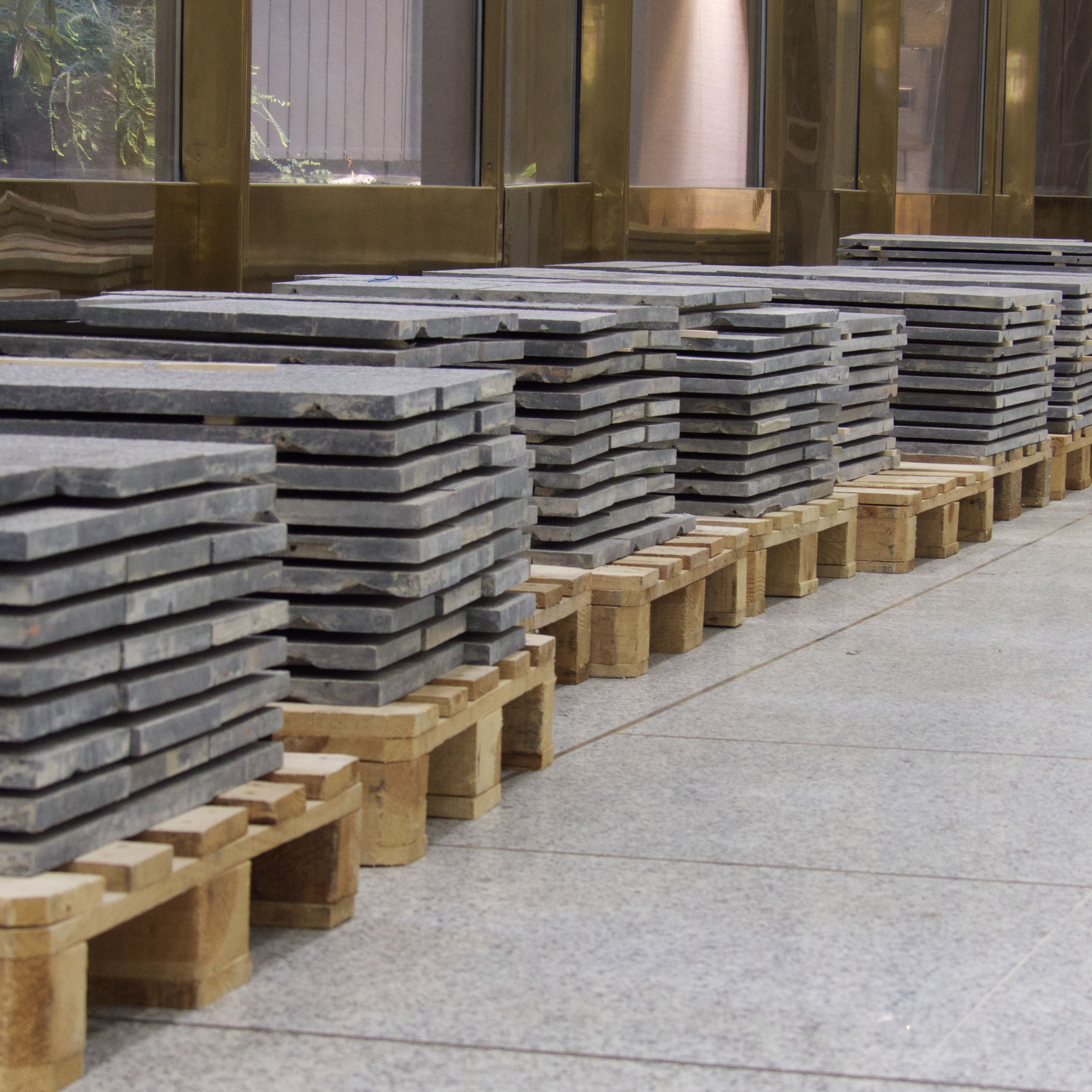 In total, more than 230 tons of materials were thus diverted from landfill. Materials originating from the former Générale de Banque can now be seen in several new projects in Belgium: in the municipal library of Sint-Pieters-Woluwe, in the cultural center of Bomel in Namur, in the Grand Central café in Etterbeek, and many more.