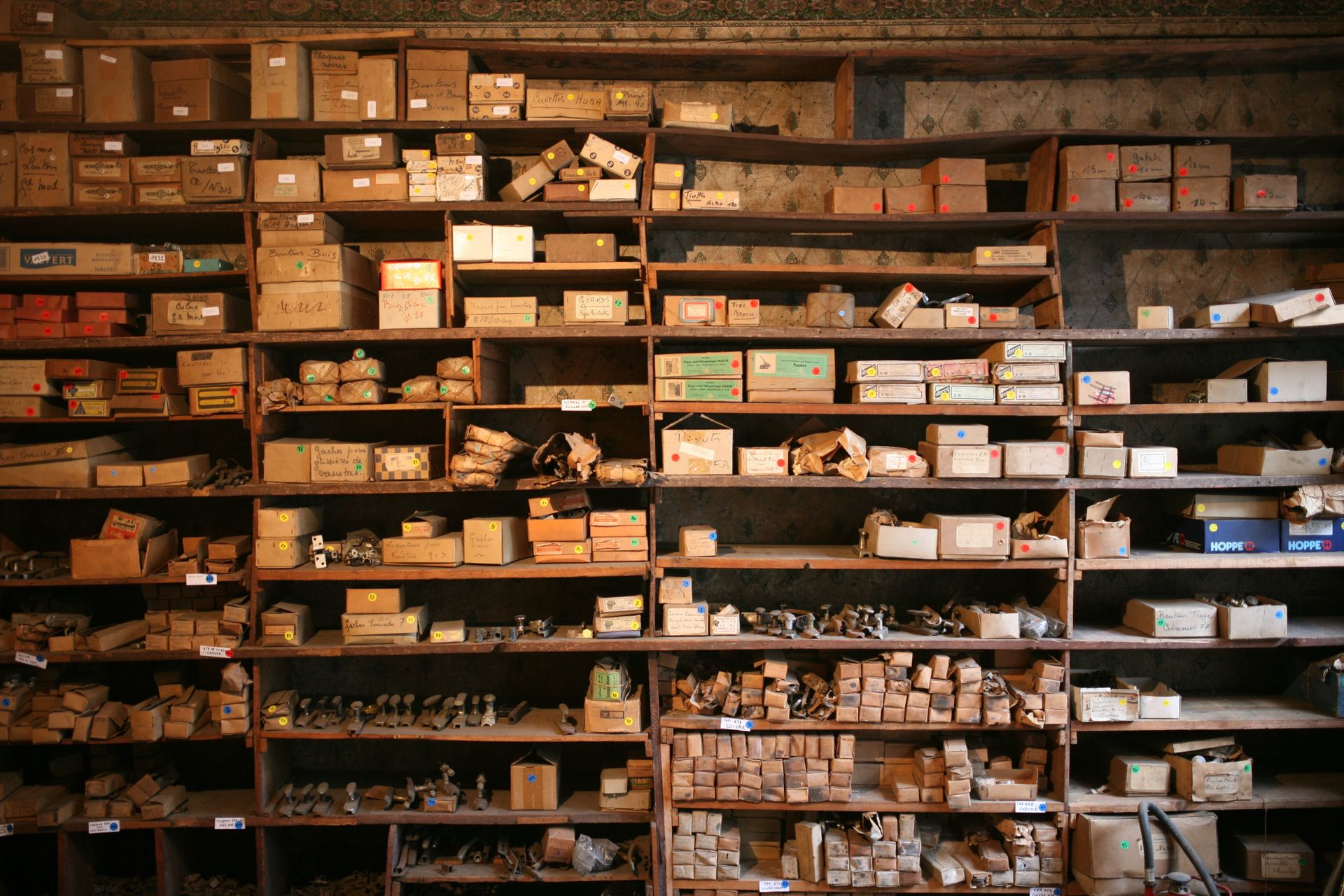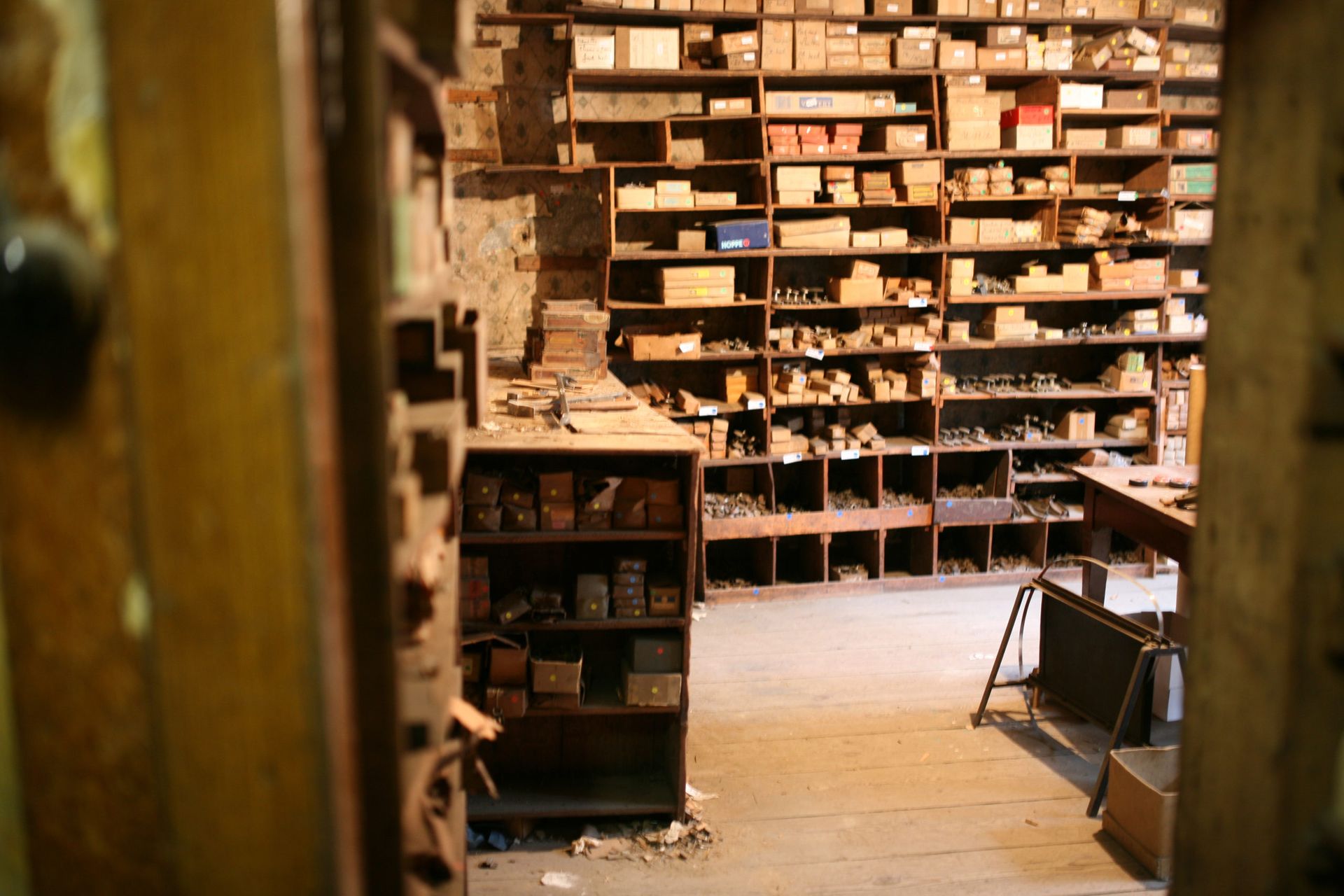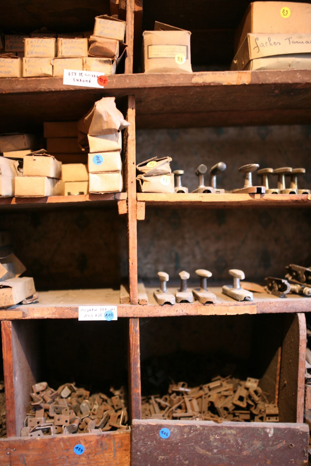In 2018 we helped to empty an 18th century timber framed house that was filled to the brim with tons and tons of historical hardware. Nails, rivets, levers, ancient wall plugs, cabinet handles, hand tools, screws, ... almost without exception produced before 1960. We have still some unpacking to do, we do this in the calm moments.