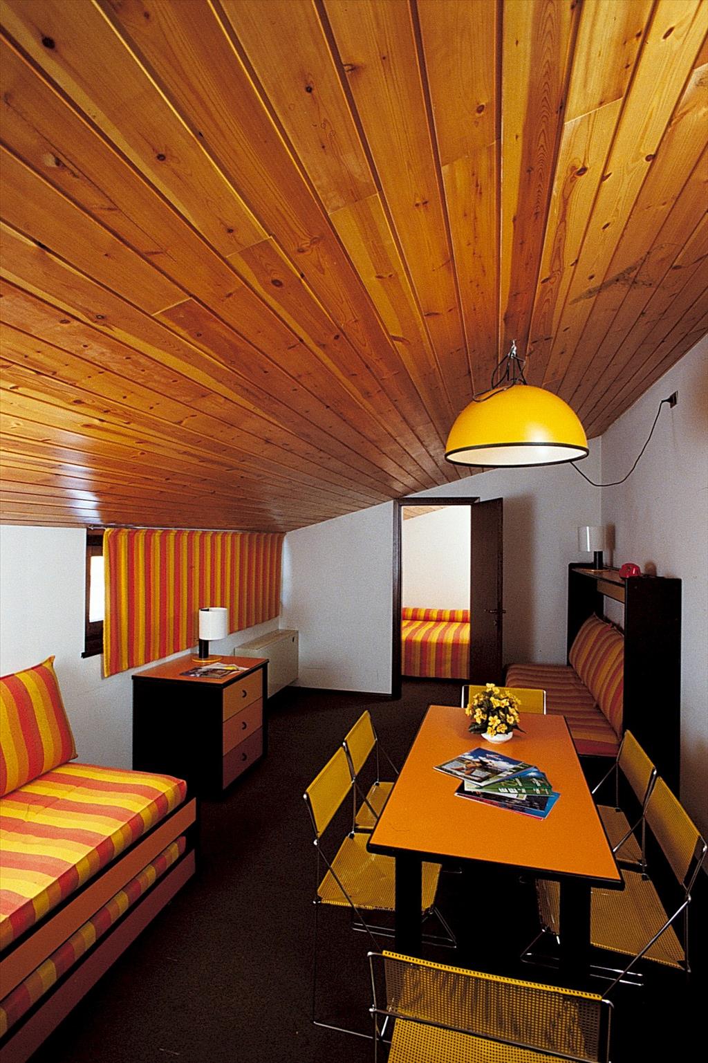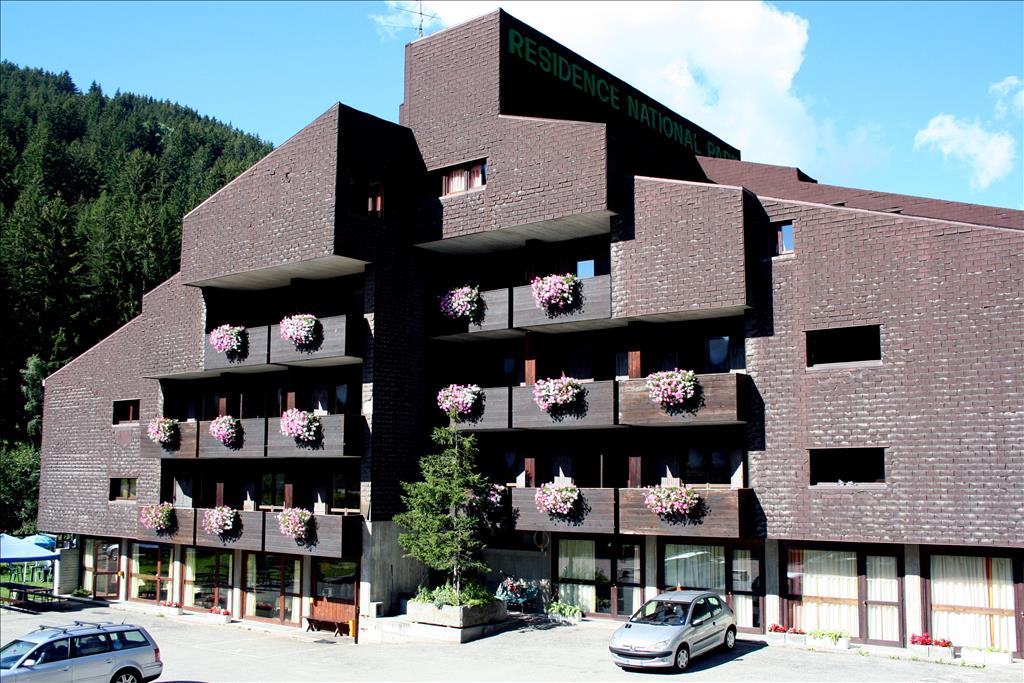 The National Park Hotel was situated in Bormio (Valtellina) in the hart of the Italian Alps. The building and its furnishings were designed by local architects Valcepina and Grossi in the 1980ies. The complex consisted of 5 floors + 1 underground level with a total of 3500sqm. It held 58 rooms (2000sqm), including some suites and small apartments, as well as two floors of shared services (1500sqm).