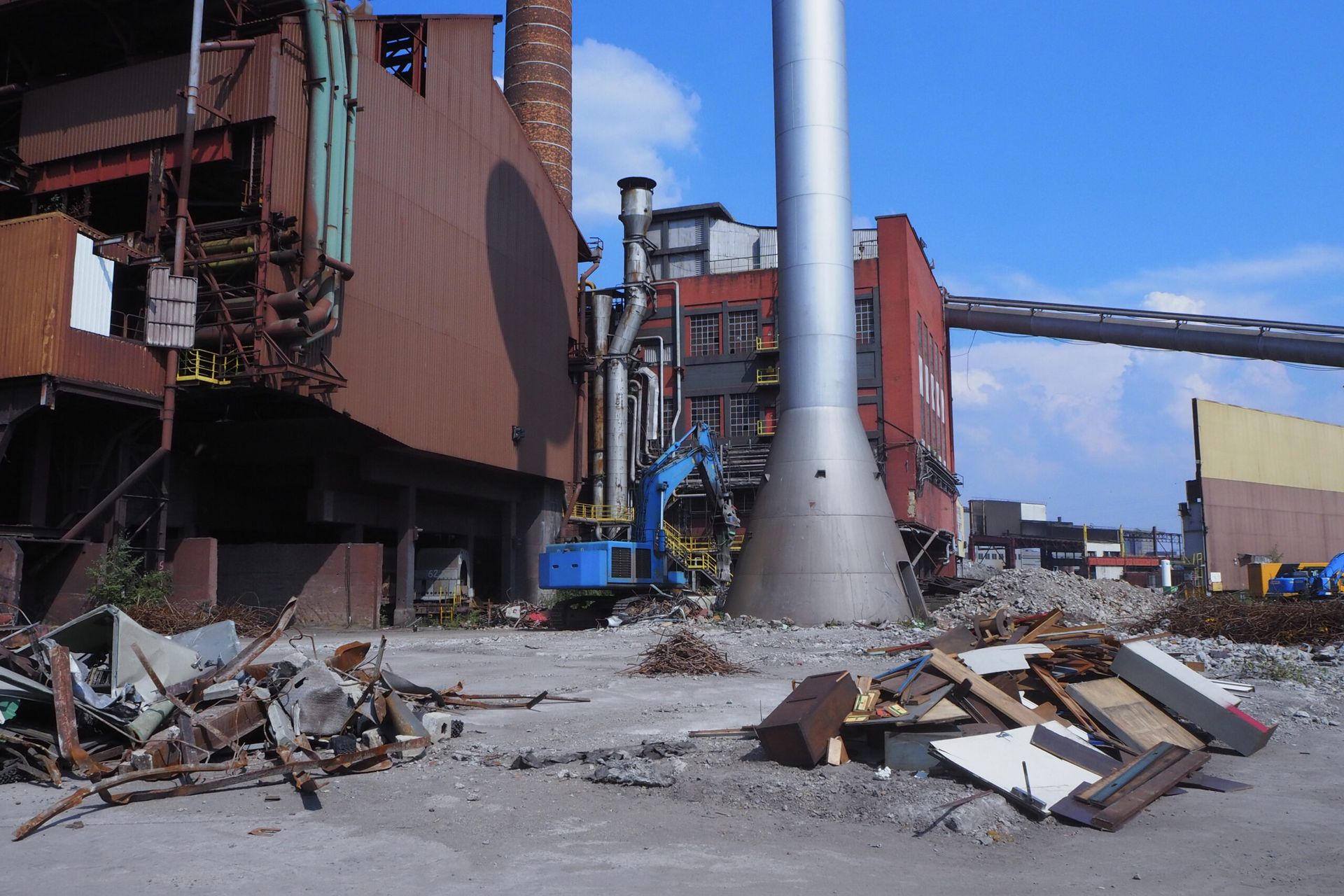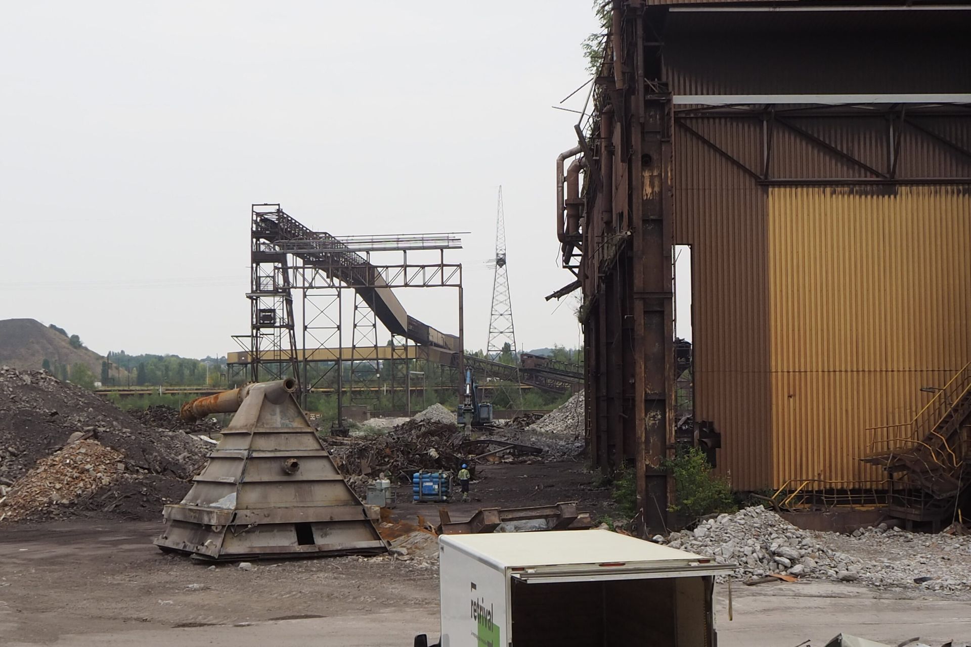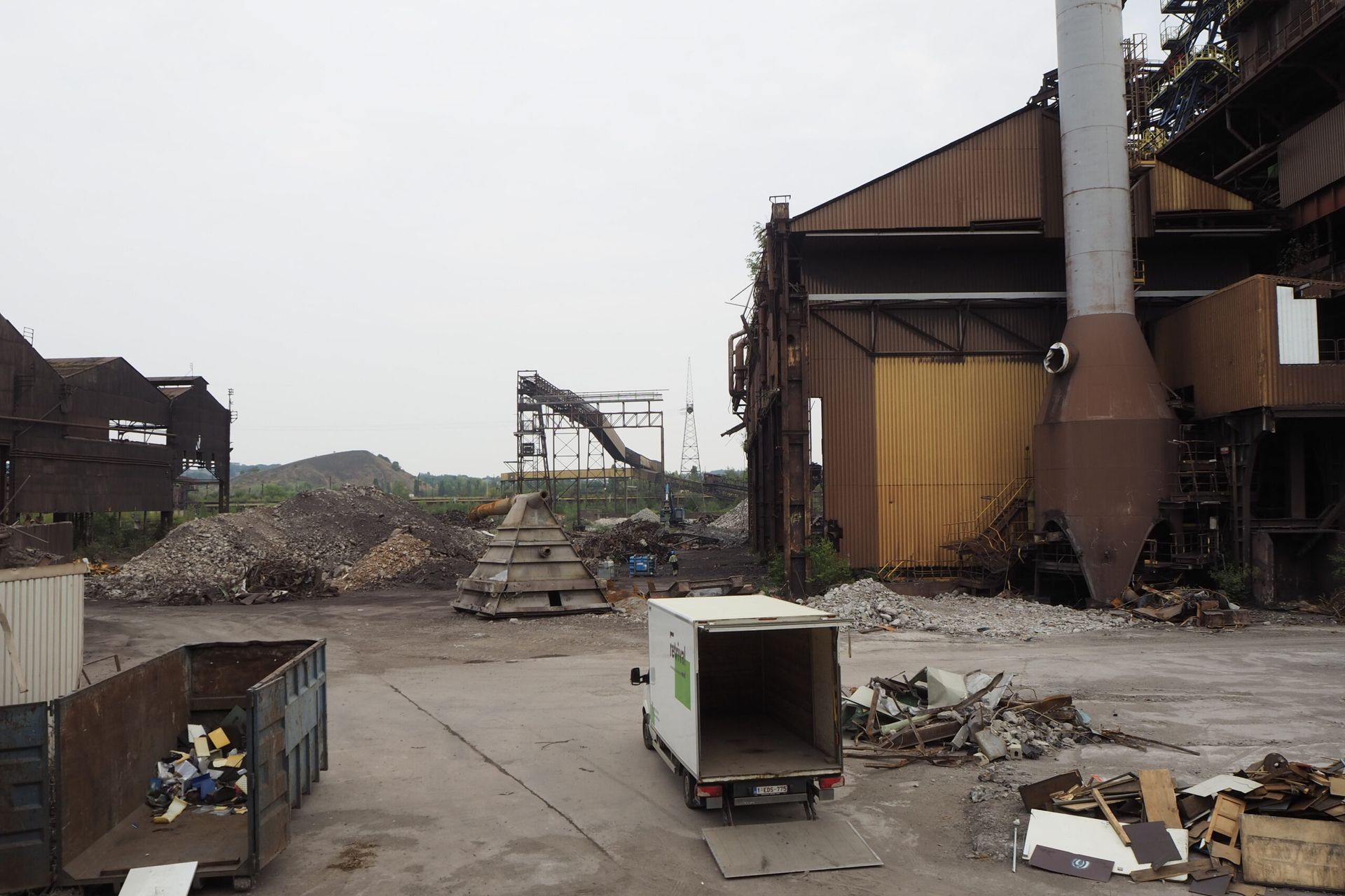 When we received the possibility to visit the former maintenance workshops of this gigantic factory, we went more out of curiosity than hoping to salvage much. We were surprised to find the workshops had been left almost untouched, because guards had been stationed on site ever since the halting of the blast furnace a decade ago.