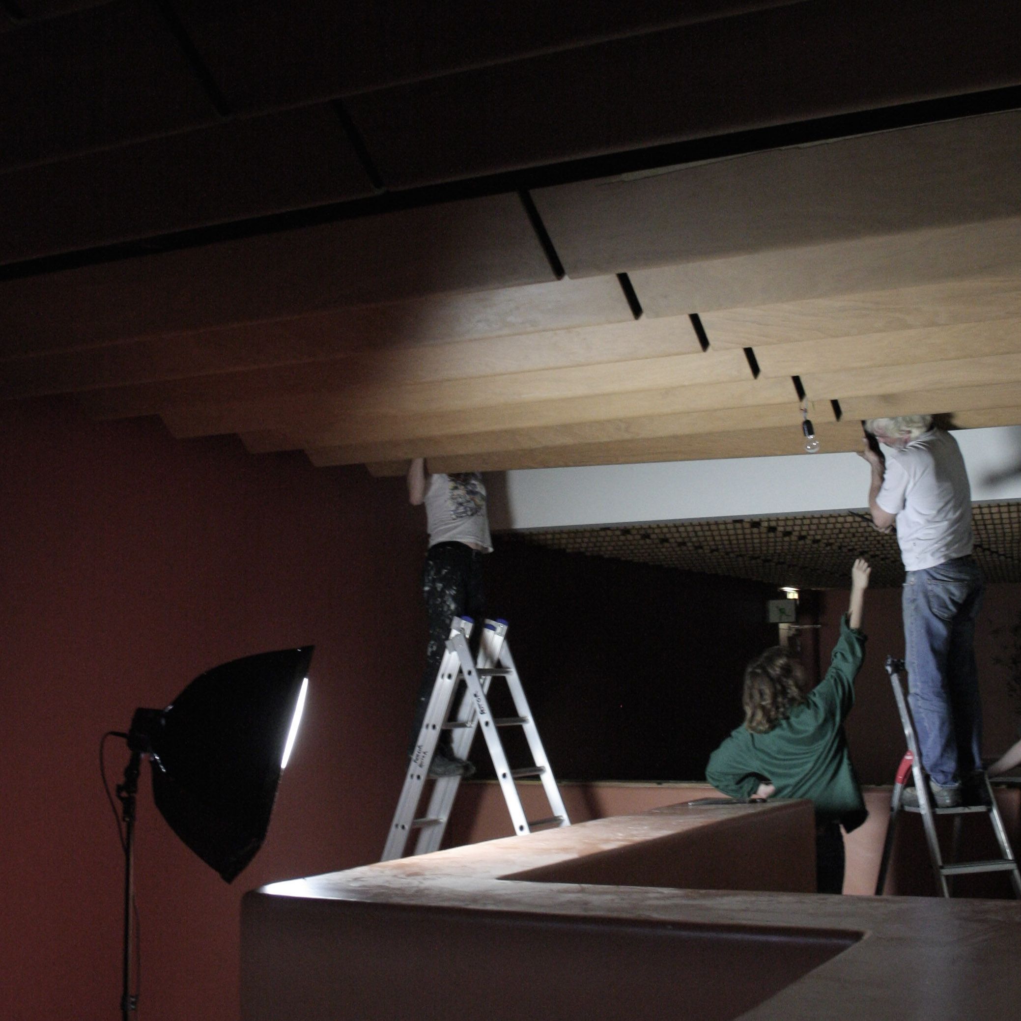 We will reveal the components gradually as we unpack them. The first items published are the recognisable curved plywood dropped ceiling panels!