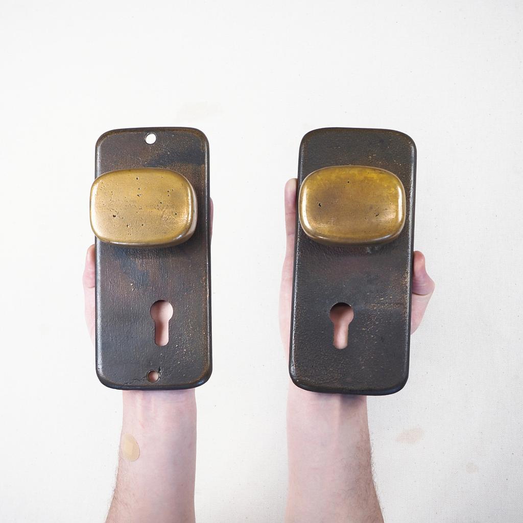 Double door handle with keyhole in sand-cast bronze by Jules Wabbes from the Générale de Banque - Swivel (Right or Left)